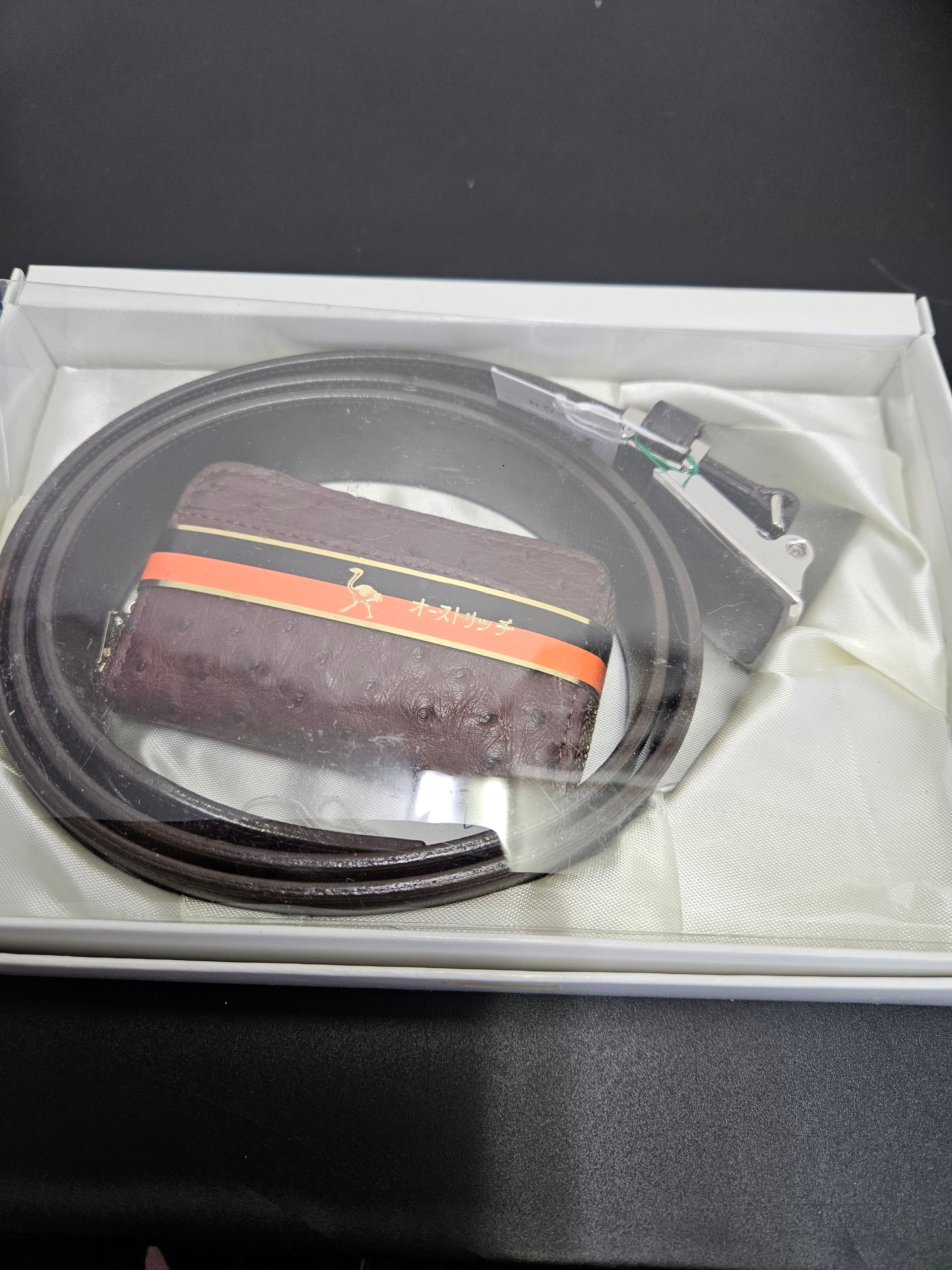 オーストリッチ小銭入れつきレザーベルト